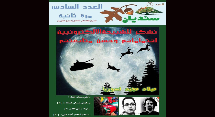 صورة غلاف العدد السادس من مجلة سنديان نقرأ في مقدمة هذا العدد "ميلاد مجيد لسوريا"
