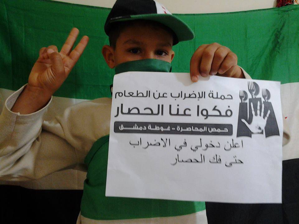 منشور من تصميم مجموعة " إضراب عن الطعام لأجل سوريا " يدعوا العالم كله للتضامن مع مايحصل من عمليات تجويع للمناطق المحاصرة ( المعضمية - حمص )