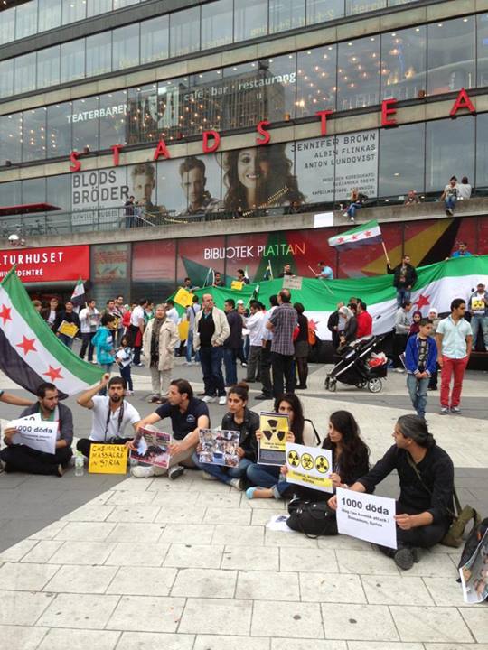 شاركت تنسيقية الشباب السريان الأشوريين - فرع السويد - باعتصام في العاصمة السويدية استوكهلم 21/08/2013 احتجاجاً على المجزرة التي قام بها النظام السوري بحق المدنيين في الغوطة الشرقية مستخدماً السلاح الكيميائي