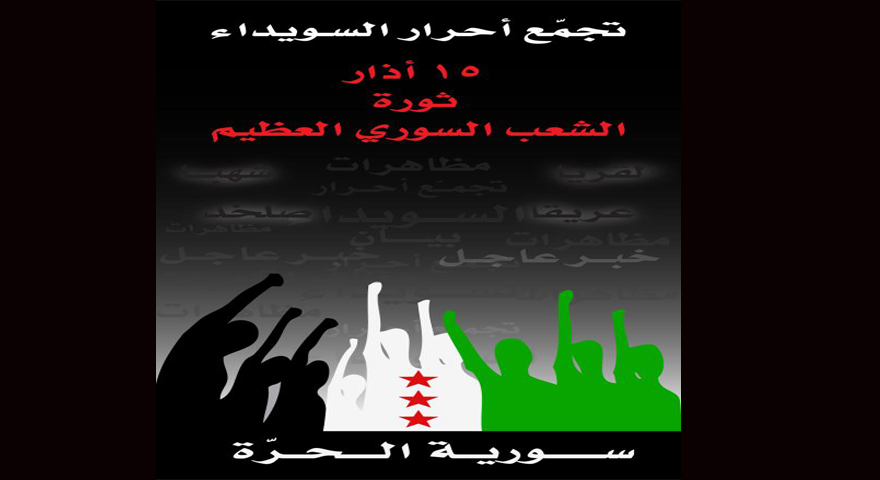 ملصق لتجمع أحرار السويداء كتب عليه 15 آذار ثورة الشعب السوري العظيم...