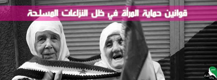 قوانين حماية المرأة في ظل النزاعات المسلحة ... ملصق إعلامي من تصميم تجمع بنات الشام
