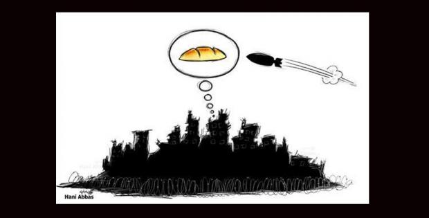 Starvation and barrels on Yarmouk, by Hani Abbas. Source: the artist´s facebook page.