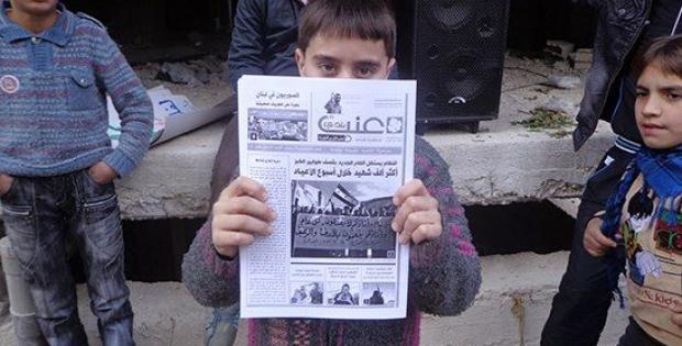 Enab Baladi (Grapes of My Country in English) is a newspaper launched by a group of young men and women from Darayya, out of the need for independent media to reflect the changes on the ground and join the civil, peaceful movement in Syria. The newspaper -named after the Darayya's most renowned crop- was born to challenge the regime’s four-decade long monopoly over communications. The activists decided to join efforts to provide the city with a different kind of news reports and analysis, which soon became a bi-weekly publication.