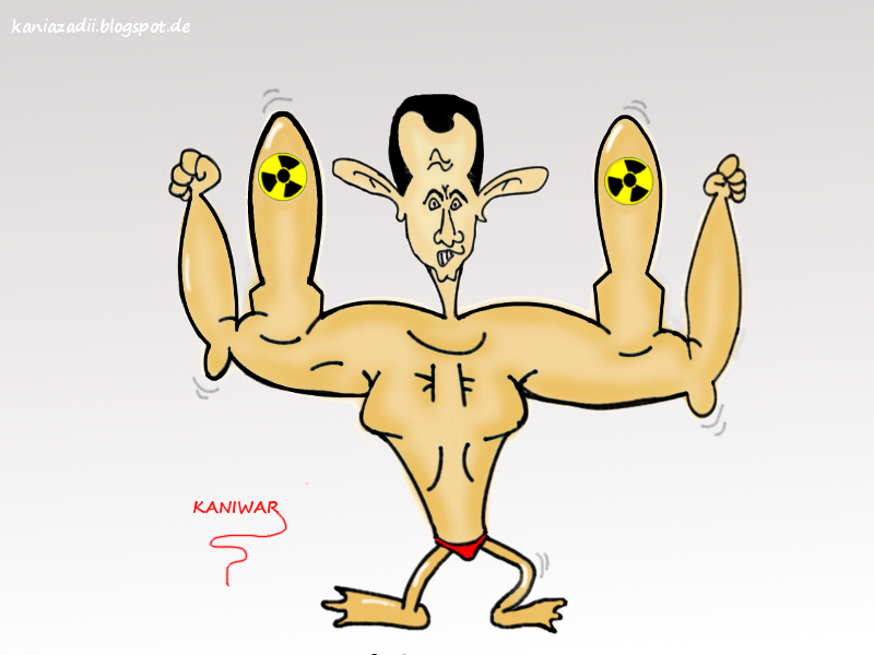 لوحة للفنان كانيوار زيدان يصور الرئيس السوري بشار الأسد يستقوي بالكيماوي ويستخدمه ضد شعبه...