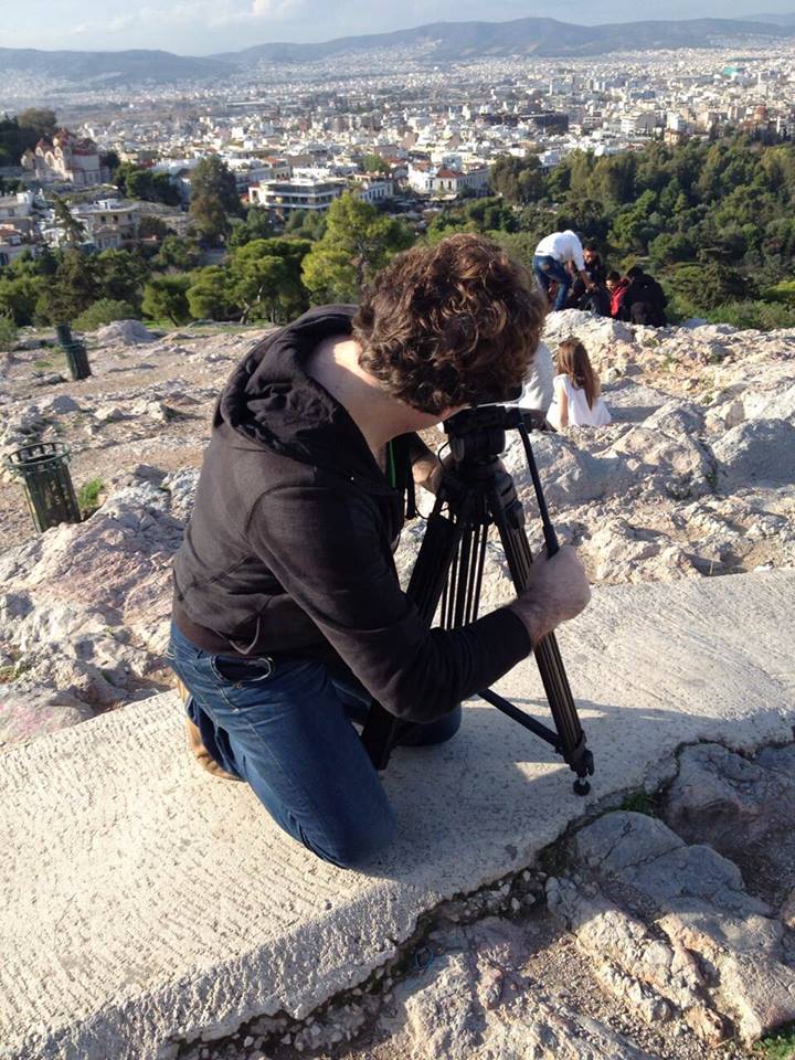 Artist Ghatfan Ghannoum filming in Athens, Greece.