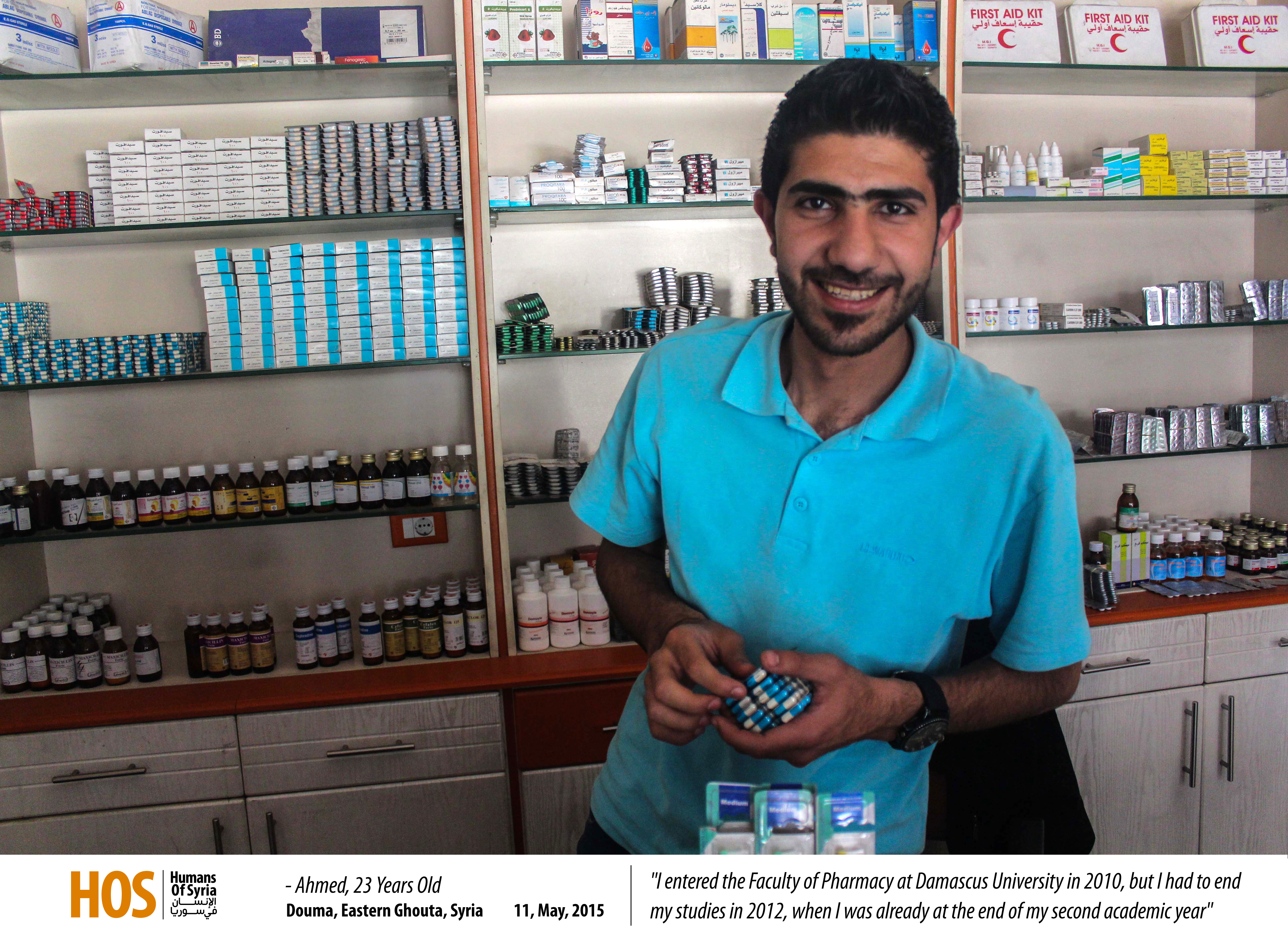 Ahmad, 23 years old pharmaceutical student, was one of countless students who had to leave under threat of arrest, only two years into his university degree. “At the time, they were asking for everyone's identity cards in Damascus, and young men from Douma were at great risk of arrest. So I preferred to stay in Douma and not return to university,” he says.