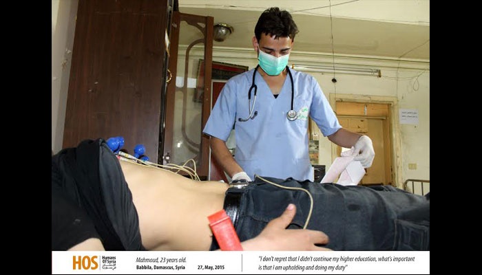 Mahmoud was in his third year of law school. He had already been arrested twice by Assad's security. When the southern countryside of Damascus became under siege, he found himself on the wrong side of the fence. A lack of medical professionals in the area pushed him to enrol in a first aid crash course. And with that he started his new career as a nurse and a first aid responder at the Bebbila clinic. "I have no regrets," he firmly declares.