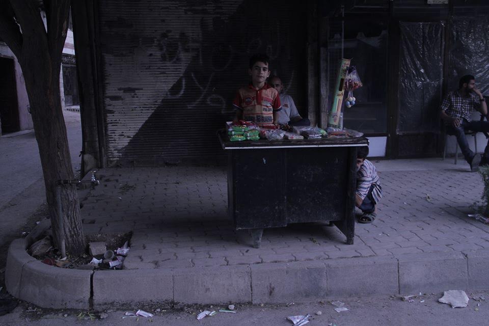 [Photo: A child-merchant in al-Qabun - Damascus - Ramadan (June 6 - July 5) 2016 (Rafia Salamah/SyriaUntold)].