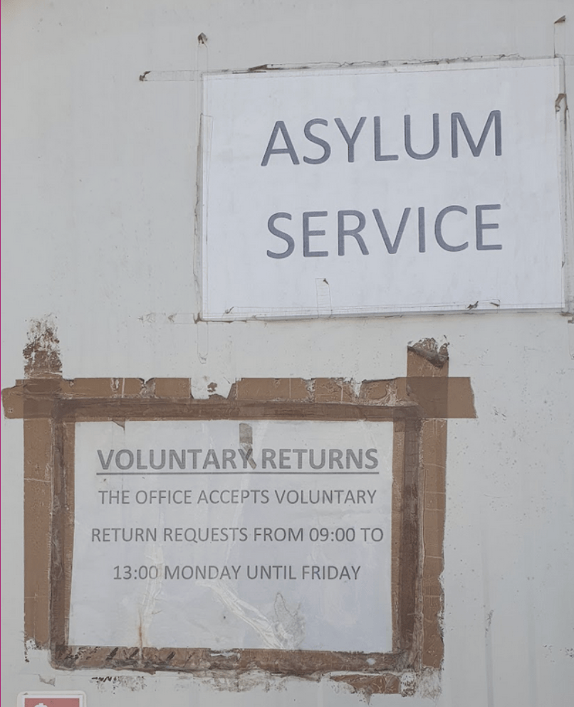 بدلاً من وجود محامٍ، كان الضبّاط من وحدة الأجانب والهجرة يزورون المحتجزين يوميّاً، ويضغطون عليهم لتوقيع اتفاقيّات العودة الطوعيّة تحت تهديد الترحيل القسريّ.