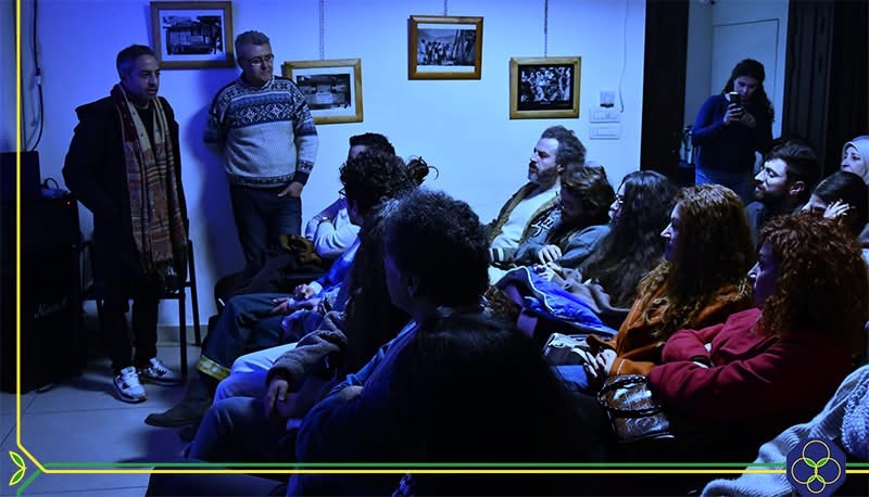 After the journey, my sight was comforted by the cultural activists that welcomed me. Among all the grassroots initiatives of film clubs in Syria during and after the previous regime, the Karasi art collective in Aleppo, an inspiring space founded by Natalie Bahadi with a group of artists in 2022, stands out.