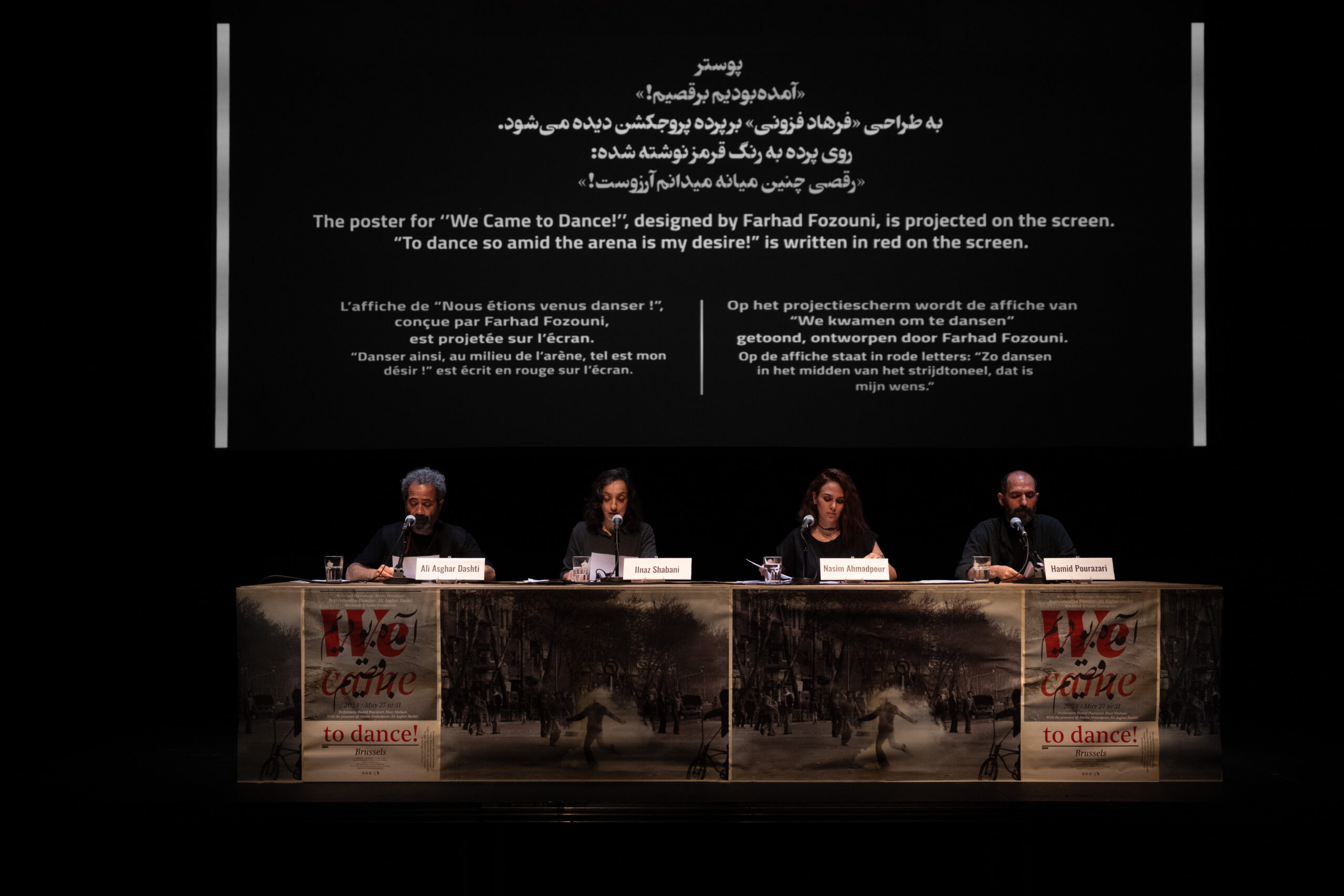 بعد يومين من هذا اللقاء، عُدت إلى باريس. وبعد شهر من عودتي، شاهدت عرضاً بعنوان أتينا لنرقص (We Came to Dance)، من فكرة ونصّ الكاتبة والممثلة الإيرانية نسيم أحمدپور، وإخراج علي أصغر داشتي. عبر نصّ المؤدين والإرشادات الإخراجية التي يتم إسقاطها على شاشةٍ خلفهم، يدعونا العرض إلى تخيُّل عرضٍ آخر لا يمكن تقديمه في إيران اليوم. عرض رقصٍ لا نراه، في عرض أداءٍ يحكي عن الرقص من دون رقص، لأن الرقص في إيران ممنوعٌ رسمياً منذ الثورة الإيرانية عام ١٩٧٩. ولكن مع حركة "المرأة، الحياة، الحرية" (٢٠٢٢)، تحوّل الرقص إلى شكلٍ من العصيان ضد السلطة، حيث انتشرت مجموعةٌ من فيديوهات الرقص على مواقع التواصل الاجتماعي كجزءٍ من الحراك، مما دفع الحكومة الإيرانية إلى استدعاء الراقصين والراقصات، وأمرهم بعدم ممارسة الرقص مجدداً، وأن يسجّلوا على المنصَّات نفسها تصريحاتٍ تقول: "أنا (اسم الراقص/ة)، تمَّ إعلامي بأن الرقص، بشكلٍ عام، يُعتَبَر جنحةً في بلدي. وعبر هذه الرسالة، أتعهَّد بعدم ممارسة أي نشاطٍ له علاقةٌ بالحركة، الكوريغرافيا، أو الرقص المعاصر بعد الآن"[3].
