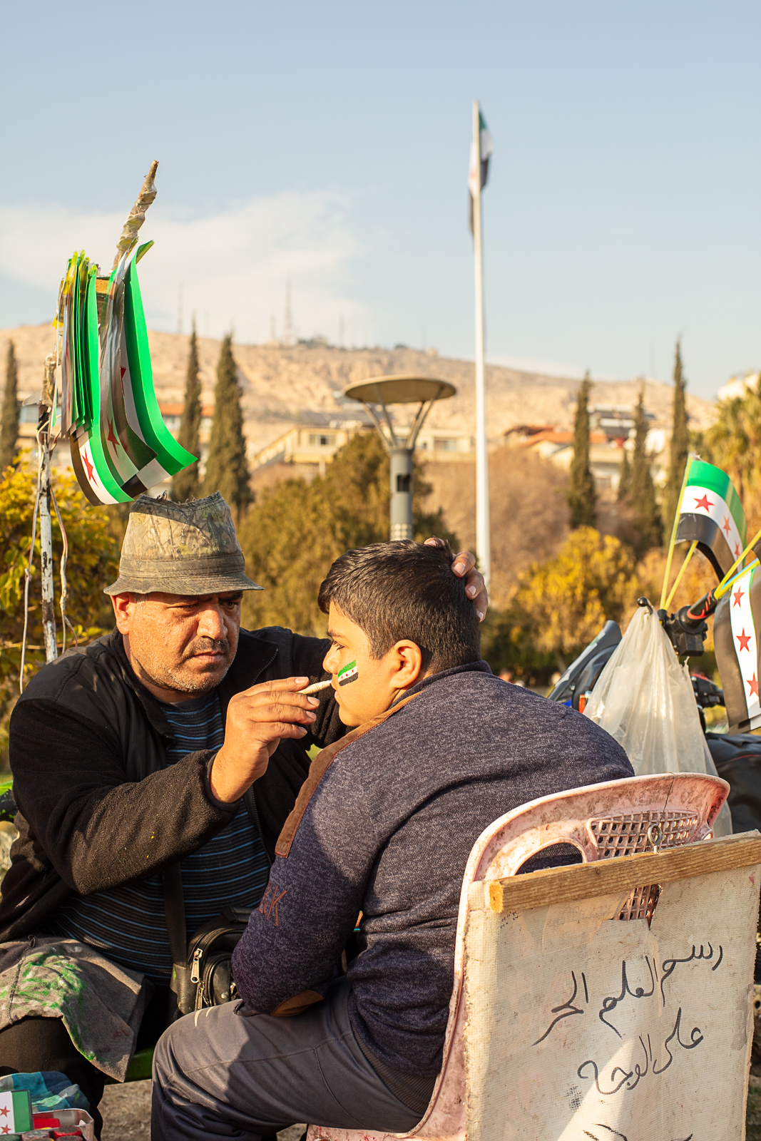 انطلق المواطنون إلى الساحات ابتهاجاً فور هروب الدكتاتور، وعمت البلد أفراح تشبه ما تحكي عنه حكايات الأطفال وأساطيرها، ومع الحشود والاحتفال، سارع صغار الكسبة المعتادون على التأقلم وخفة الحركة، ليتكسبوا من هذه الفرحة، فطبعت الأعلام الجديدة بغمضة عين على الأكواب والملابس و الهدايا التذكارية، وزرعت ساحات الاحتفال ببسطات تبيع مفردات الفرحة الجديدة.