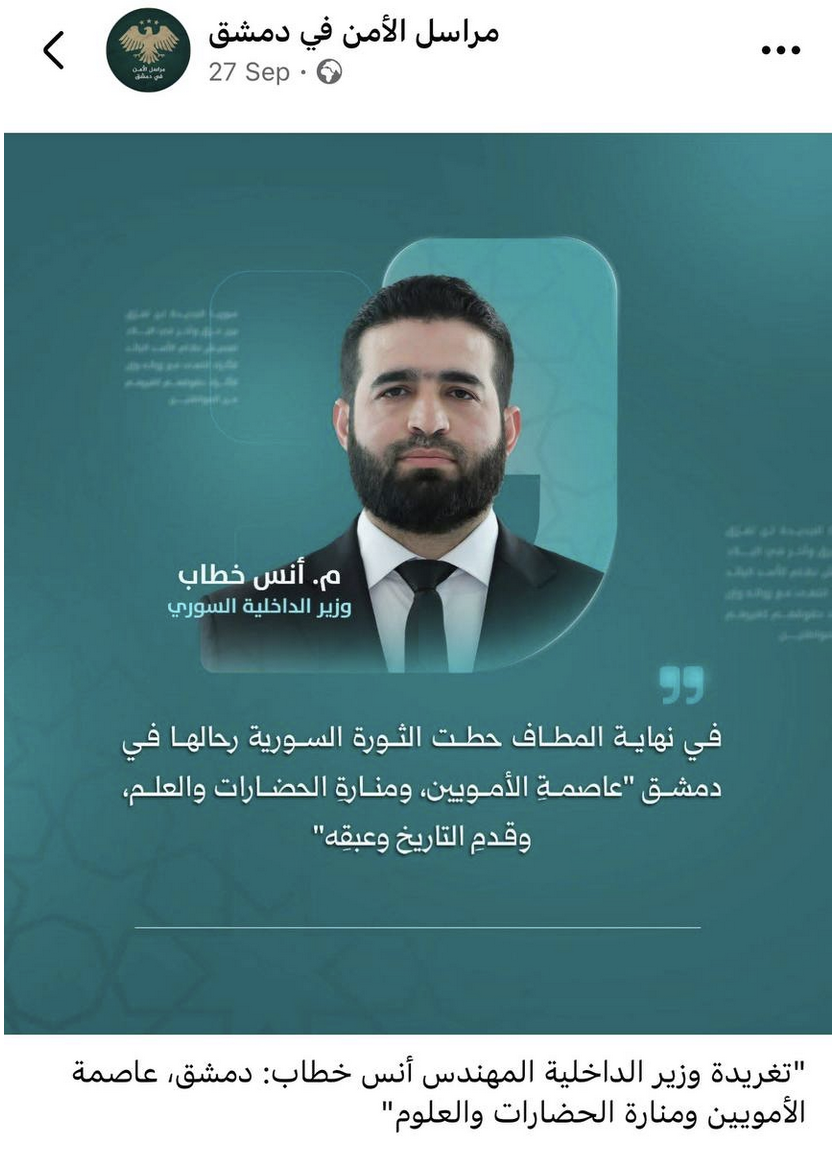 غير أن العبارة نفسها "دمشق عاصمة الأمويين" ليست جديدة. فقد استخدمها رئيس النظام المخلوع بشار الأسد قبل سنوات في سياق استمالة المخيال الحنيني، حين قدّم المدينة بوصفها "عاصمة الأمويين ومهد الحضارة العربية". إلا أن هذه العبارة اكتسبت دلالة مختلفة بعد سقوطه؛ إذ غدت حنينية وخلاصية في آنٍ معاً، حلماً بالأصالة بعد عقود من الإذلال والاستبداد.