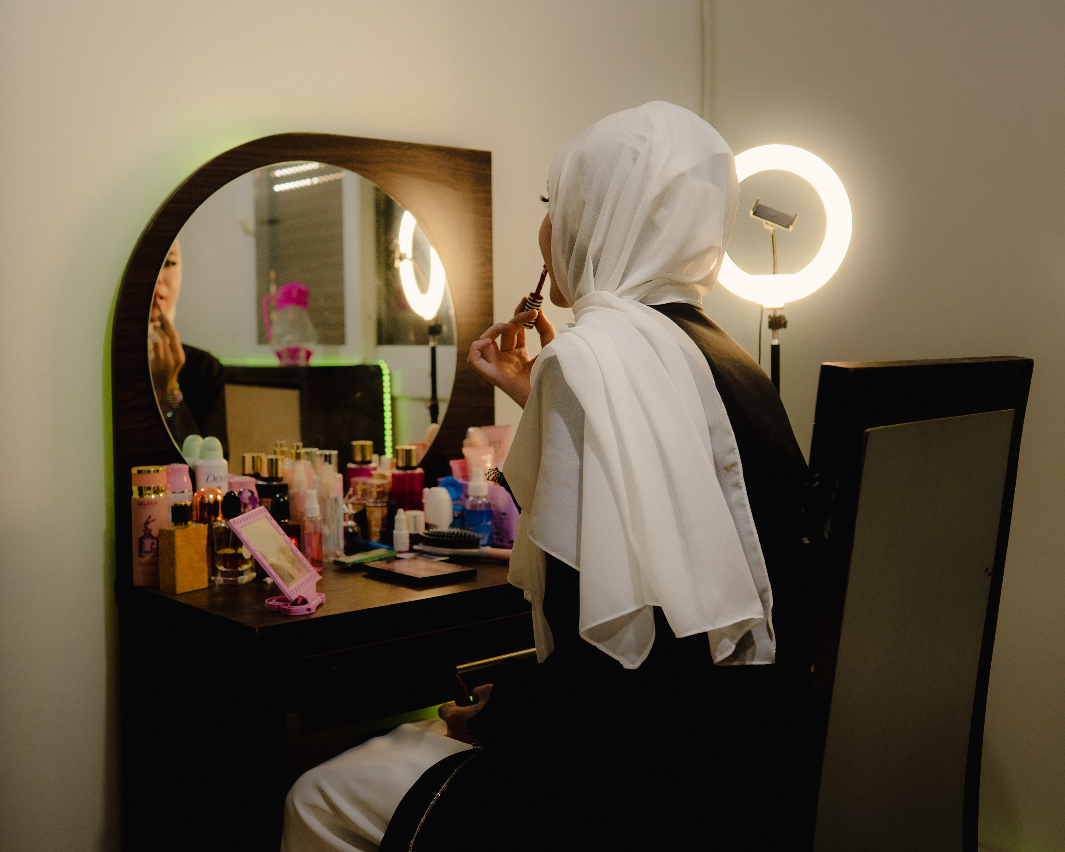She did not choose the name Grace by chance. She borrowed it from Grace Zak, a Syrian model, the embodiment of an ideal denied to her here. A name as a refuge, a silent promise. In a country that tries to erase her, Grace fashions another existence for herself — fragile and inward — where, for an instant, she can breathe and be herself.