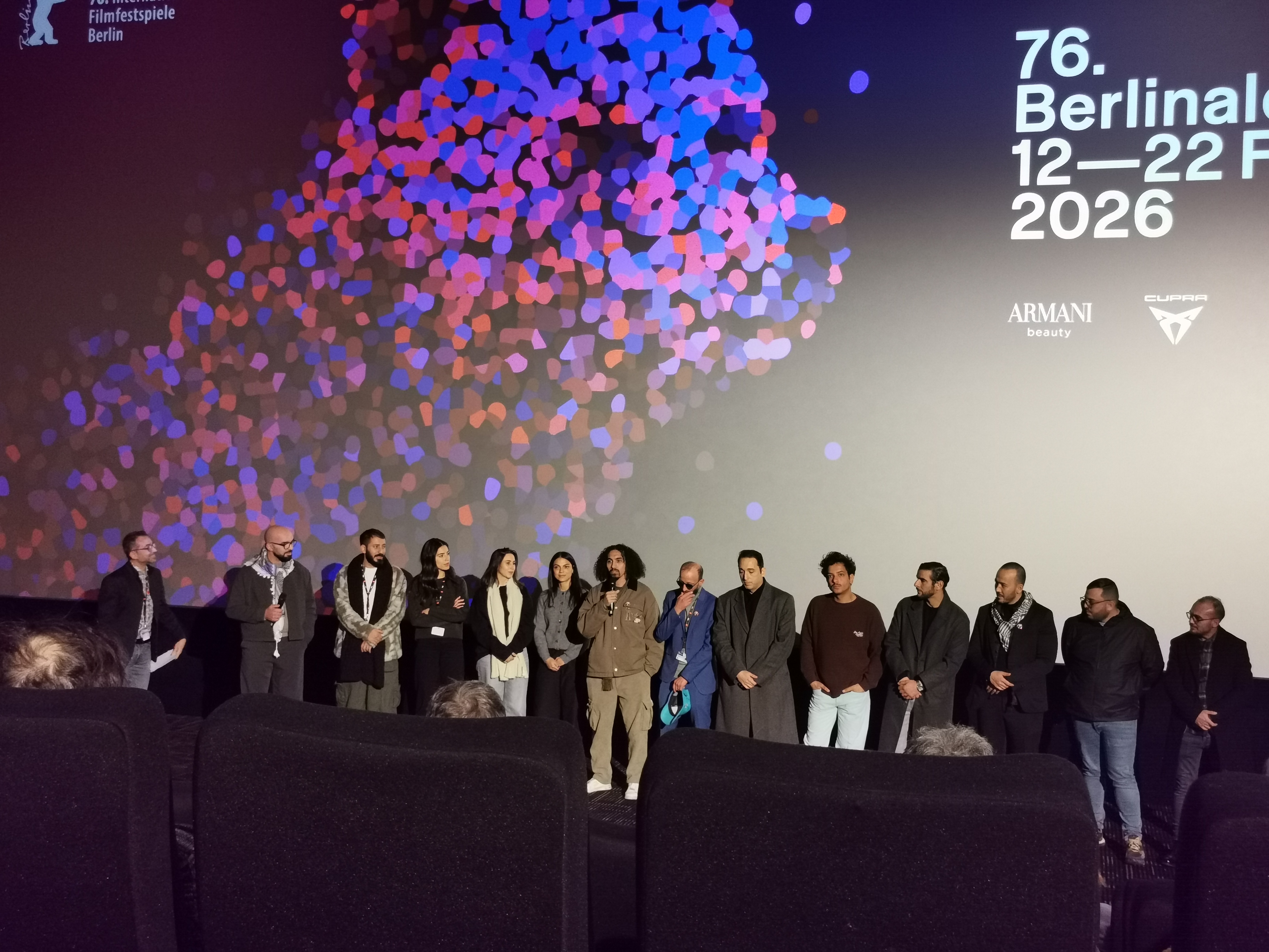 شارك الخطيب، ومدير تصوير الفيلم طلال خوري، ومصممة الصوت رنا عيد، مع الجمهور، ومواهب برليناله تالينت، تفاصيل عن الظروف الإنتاجية الصعبة للغاية، خلال تصوير الفيلم في ثلاث دول، الجزائر والأردن وفرنسا، وكيف أنتج الفيلم خارج "نظام السوق"، حتى الوصول لمرحلة ما بعد الإنتاج .. إلا أن هذه الظروف تبقى في النهاية غير مرئية ولا تعني الجمهور، الجالس أمام الشاشة الكبيرة، وهي تظهر فيلماً محدود الإمكانيات، بشخصيات من طبقة واحدة، محدودة الظهور، يتواصل معها في سياق الحصار فحسب، غالباً في مواقف كوميدية خفيفة الظل، تتعامل مع حاجات إنسانية أساسية، لكن أيضاً تقف عندها .. فيما تفتقد الحلقات في النهاية إلى التماسك كوحدة سردية متكاملة، ولا تخلق أي منحنيات شخصية، ما يجعل الأثر العاطفي للفيلم محدوداً، ويقلل من فرص بقاء شخصياته في الذاكرة.