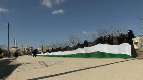 إنها معركة المرأة السورية المتشعبة: ضد ذكورية القبيلة، وضد الإرهاب الأكبر ( النظام)، وضد الإرهاب الأصغر ( داعش وتوابعها).. عبر أبسط الأدوات: علم الثورة منسوج من الصوف على اليد ( المخرز)، بطول 75 متر وعرض 2,25 متر، لكل لون 75 سم، فما هي الحكاية؟ ومن هن هاتي النسوة اللواتي يفكرن بصنع الأعلام الكبرى وسط المعارك والحروب غير راضخات لمحاولة إعادتهن إلى البيوت بحجة الحرب والتقاليد؟