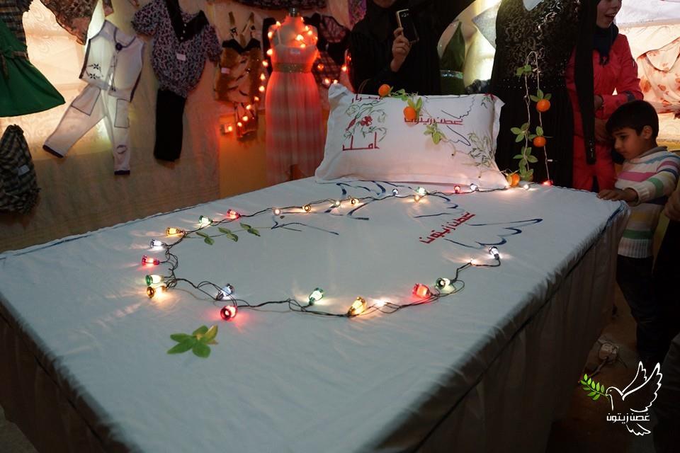 جانب المنسوجات، المصدر: صفحة منظمة غصن زيتون، فيسبوك.