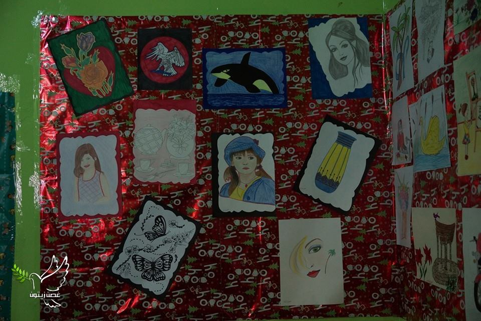 عشرات اللوحات الفنية والمنسوجات زينت صالة تابعة لمركز غصن زيتون الثقافي في مدينة داعل، قام بإنجازها مجموعة من الأطفال واليافعين، وتراوحت أعمارهم بين 12 و18 سنة، كما صرح "أيهم الغريب"، الناطق الإعلامي باسم منظمة غصن زيتون لحكاية ما انحكت.